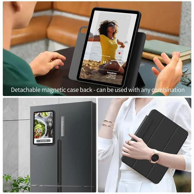 Adjustable Angles: The inner shell is lightweight and has built-in magnets, which can magnetically attach the iPad to the outer shell or any iron metal surface, such as a refrigerator. The outer shell adopts a tri-fold design stand and supports 9 different folding methods, allowing you to easily store it and get different viewing angles ^^