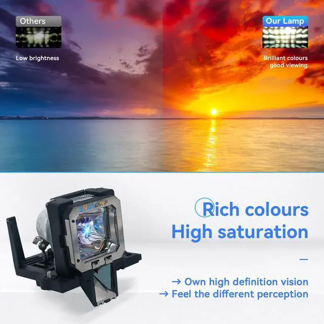 COMPATIBLE MODULES: for JVC DLA-RS66 DLA-X35 DLA-RS56 DLA-RS56U DLA-X95R DLA-RS46 DLA-X700R DLA-X500R DLA-X55R DLA-X75 DLA-X75R DLA-X900R DLA-X900RBE DLA-X95 DLA-X950R DLA-RS46U DLA-RS48 DLA-RS48U DLA-RS49 DLA-RS57 DLA-RS57U DLA-RS66U DLA-RS66U-3D DLA-RS67 DLA-RS67U DLA-RS4810 DLA-RS4910 DLA-RS6710 Projector Lamp ^^ The new generation optimized wick design has better brightness, durability, and stability. Can be used for about 5000 hours, with a brightness increase of over 90% ^^ In pursuit of higher quality, the bulb is installed in a high-quality high-temperature-resistant housing, which is safe to use and easy to install. It can be easily replaced when the projector is turned off, just like taking out an old lamp, exactly matching ^^ Each product has undergone 100% performance testing before leaving the factory to ensure that each product can run with high performance and is brighter and more reliable than other ordinary projector bulbs on the market ^^ Zmstlamp is a professional manufacturer and supplier of projection light sources. We will provide you with a 220-day warranty and a 30-day money-back guarantee, without any conditional feedback within 12 hours, we will do everything we can to make you satisfied. Make your choice without any worries