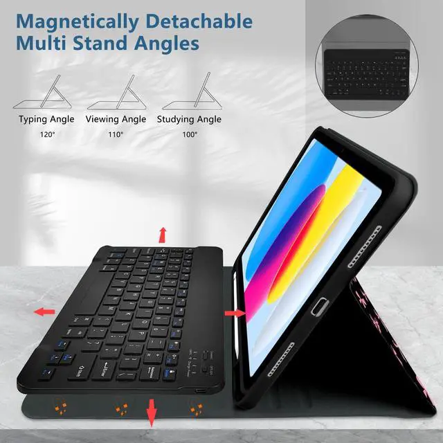 Generation (Model Number: A2696/A2757/A2777). for iPad 11th (A16) generation 11-inch 2025 (ModelA3354, A3355, A3356), Please check the model number on the back of your for iPad before purchasing ^^ [Pencil Holder and Multi-angle Adjustable Support] This 10th generation for iPad tablet case has a built-in Pencil holder that makes it easy to carry Pencil and take it out. The for iPad case has three grooves that can be used at three angles, and is made of non-slip material that supports the for iPad to stand up ^^ [Rechargeable Keyboard] The for iPad Bluetooth keyboard has a built-in battery with high stability, so you don't need to replace the battery. You can charge the keyboard using the charging cable that comes with the keyboard. The keyboard has a Bluetooth acceptance range of 10 meters. If you don't need to use the keyboard, you can remove it and turn it into a regular for iPad case, which makes for a handy experience(Detachable, Rechargeable, Magnetically Absorbent) ^^ [Automatic Sleep/Wake] This for iPad case will automatically put your for iPad to sleep when you close the front cover of the case. Because an iron keyboard may prevent magnets from attracting to each other, remove the keyboard for optimal sleep/wake up ^^ [Include Content] The box contains the for iPad case, Bluetooth keyboard, keyboard charging cable, and instruction manual.