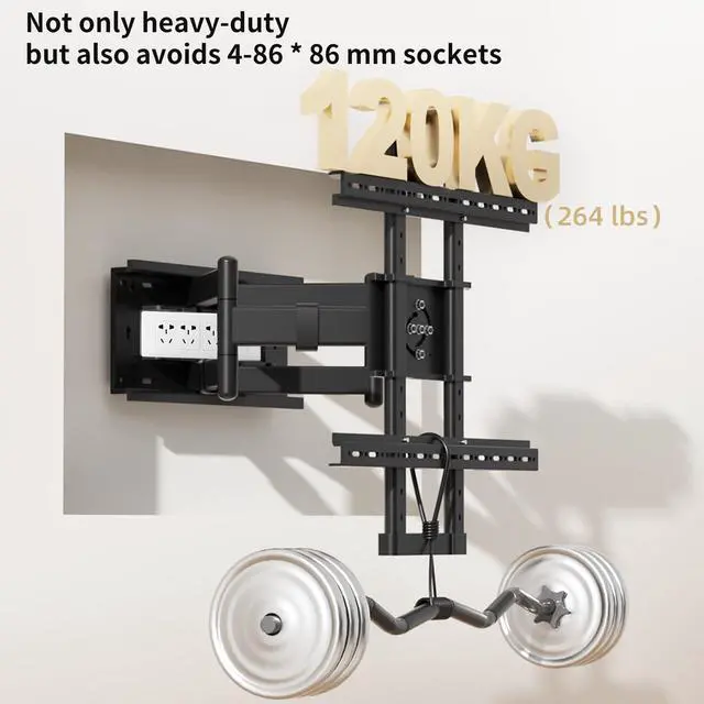 Durable: The 6 articulated arms of the TV stand is made of cold-rolled steel and the fully enclosed one-piece front frame is more immutable, In addition, the integrated stamping wall panel can avoid 4 sockets sized 86 * 86 mm, Can be installed in the Living Room Bedroom Kitchen and Office ^^