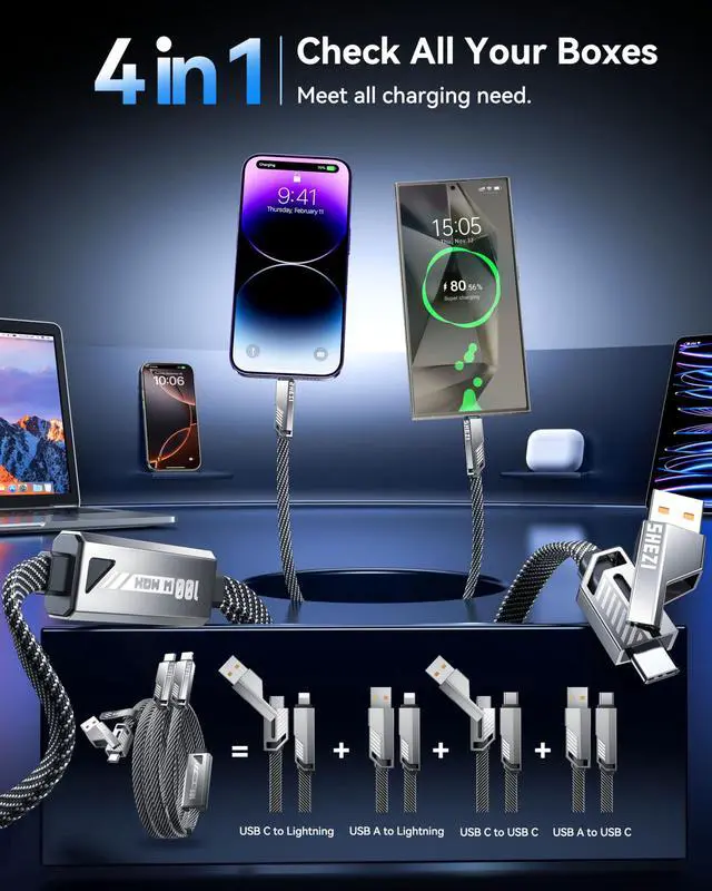 Multi-Use Cable: This versatile cable offers four combinations [USB-C to USB-C, USB-C to Lightning, USB-A to USB-C, and USB-A to Lightning]. No more fumbling with different cables it's all in one convenient cable ^^ Dual Fast