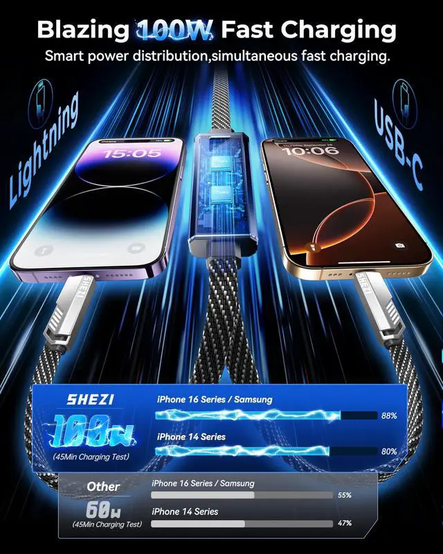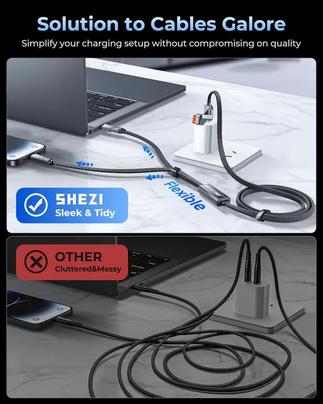 Charging Made Simple: Enjoy up to 100W of power for fast charging of a single device. Effortlessly charge two devices at the same time, thanks to the built-in smart chip that intelligently distributes power for efficient charging. Say goodbye to the hassle of juggling multiple chargers and embrace the simplicity of fast, effective charging with one sleek cable ^^ 480Mbps