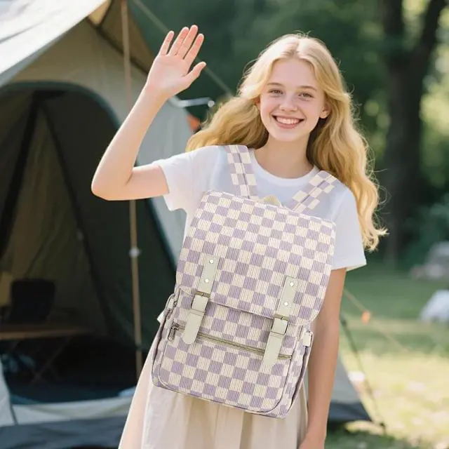 ^^ Flap Design: The travel backpack features a magnetic closure flap that enhances both style and security.