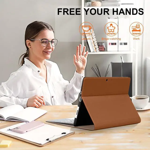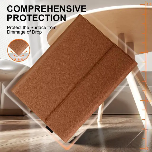 (Note: Keyboard is not included) ^^ Built-In Surface Pen Holder & Keyboard Compatibility Never lose your Surface Pen again! The secure, elastic pen loop keeps your stylus always within reach. The case is intelligently designed to work seamlessly with your Microsoft Type Cover (sold separately), allowing you to type and close the cover without any hassle. ^^ Versatile Multi-Angle Kickstand for Work & Play Boost your productivity and comfort. The reinforced, anti-slip kickstand can be adjusted to multiple stable viewing angles, perfect for typing, watching videos, or drawing. The non-slip design ensures your Surface stays firmly in place on any surface. ^^ Premium Microfiber Leather & User-Friendly Design Experience a luxurious feel and superior durability. The exterior is made of high-grade microfiber leather, resistant to dirt and easy to clean. Inside, a soft microfiber lining safeguards your screen from scratches. Features precise cutouts for all ports, cameras, and speakers, and supports convenient charging without removing the case. ^^ Magnetic Auto Sleep/Wake & Worry-Free Warranty The built-in magnets ensure a secure closure and automatically put your Surface to sleep when closed, saving battery life.