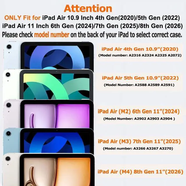 Perfect Compatibility: Specially designed for 11 inch New iPad Air 8th/7th/6th Generation M4 (2026) / M3 (2025) /M2 (2024) (Model