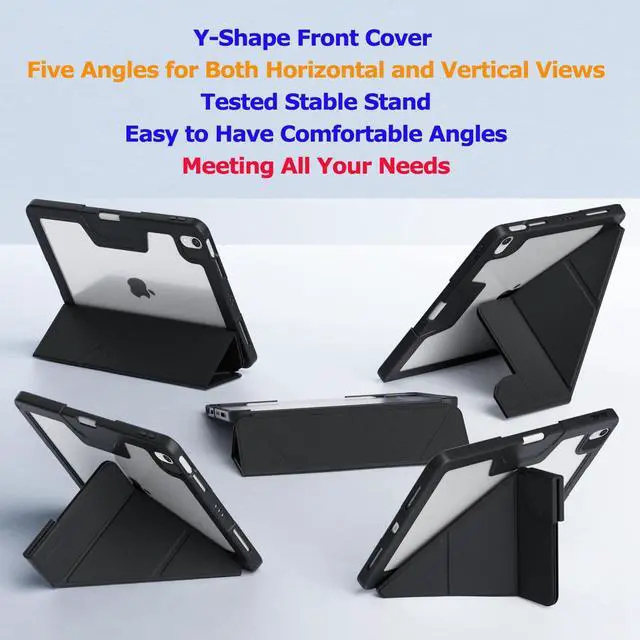 Five Angles: The Y-Shape front cover can be folded to 5 different angles for typing, drawing, video calls, reading and watching videos. You can easily change from horizontal views to vertical views with strong build-in magnetic strips ^^ Built-in