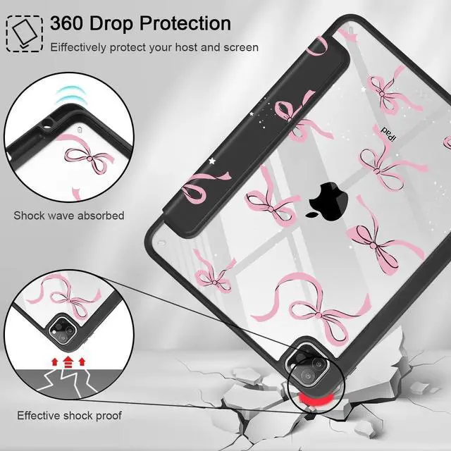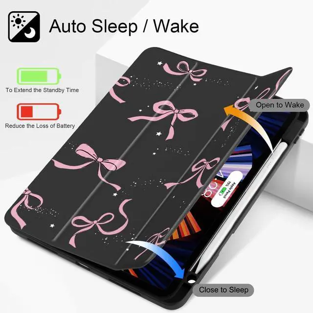 Compatibility with: Exclusively designed for iPad Pro 11 Inch 4th Generation 2022 (A2435/A2759/A2761/A2762), iPad Pro 11 Inch 3rd Generation 2021 (A2301/A2377/A2459/A2460), iPad Pro 11 Inch 2nd Generation 2020 (A2228/A2068/A2230/A2231) and iPad Pro 11 Inch 1st Generation 2018 (A1980/A2013/A1934/A1979), Not compatible with any other iPad devices. ^^ Full ProtectionMade of durable PU leather and TPU, front and back covered by soft PU, the inside durable TPU can fix your Tablet and protect its back cover and four corners, maximum protect your tablet from drop and scratch, the surface is soft and silky to provide a comfortable touch to the skin. ^^ Clear Black CoverHardshell back cover with flexible TPU bumper protects your iPad from shocks, drops and impacts. Soft microfiber interior front prevents your tablet from scratched. And the crystal clear back cover will proudly show off the Apple icon. ^^ For Apple Pencil ChargingBuilt-in Pencil holder & adapter slot, designed for charge/pair with the 2nd Gen Pencil. Grab your Pencil & adapter effortlessly whenever you want, easily to carry your pencil with your device. (Case only, other accessories not included! ) ^^ Comfortable Use Featuring a trifold design that allows for two positions.