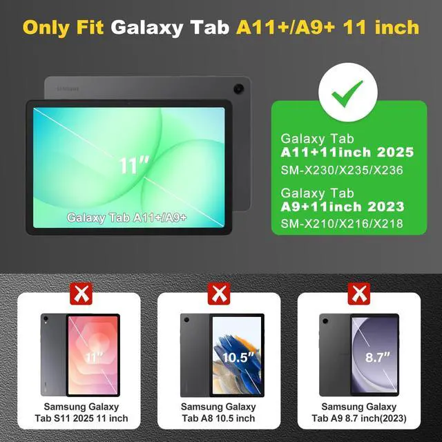Compatibility: Exclusively designed Shockproof rugged Case for Galaxy Tab A11 Plus/A9 Plus (SM-X230/X235/X236, SM-X210/X216/X215). NOT fits other tablet. Please make sure or contact us before purchase ^^ Built-in