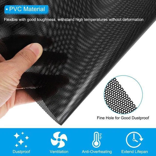 ^^ Advantage: Made of PVC material, the PC fan dust filter is lightweight, flexible with good toughness, bendable, and can withstand high temperatures without deformation for durability. Fine hole design provides efficient dustproof capabilities, maintaining proper airflow for ventilation and keeping the computer components clean to prevent it from overheating and extend the components' lifespan.