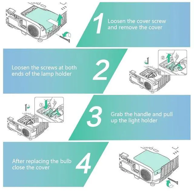 ^^ Performance: Our projector replacement lamp bulb is a new A+ lamp wick upgrade, which provides a more illustrious and clear image.