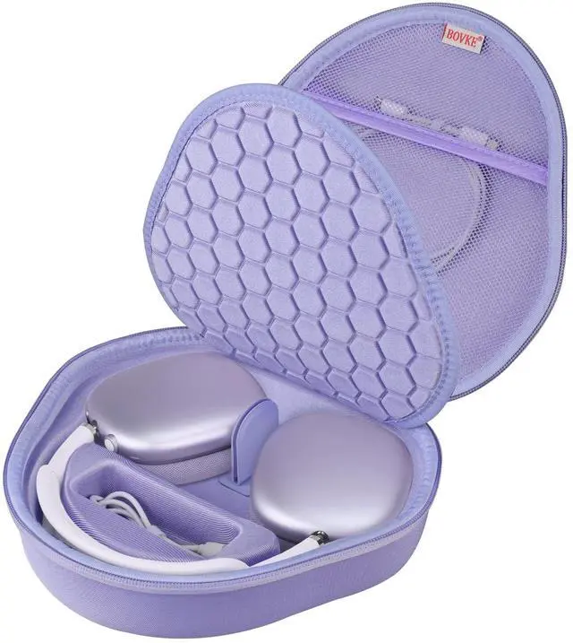 BOVKE Hard Carrying Case with Sleep Mode for Apple AirPods Max Wireless Over-Ear Headphones, AirPods Max Protective Portable Storage Bag with Mesh Pocket for Headphone Accessories, Purple