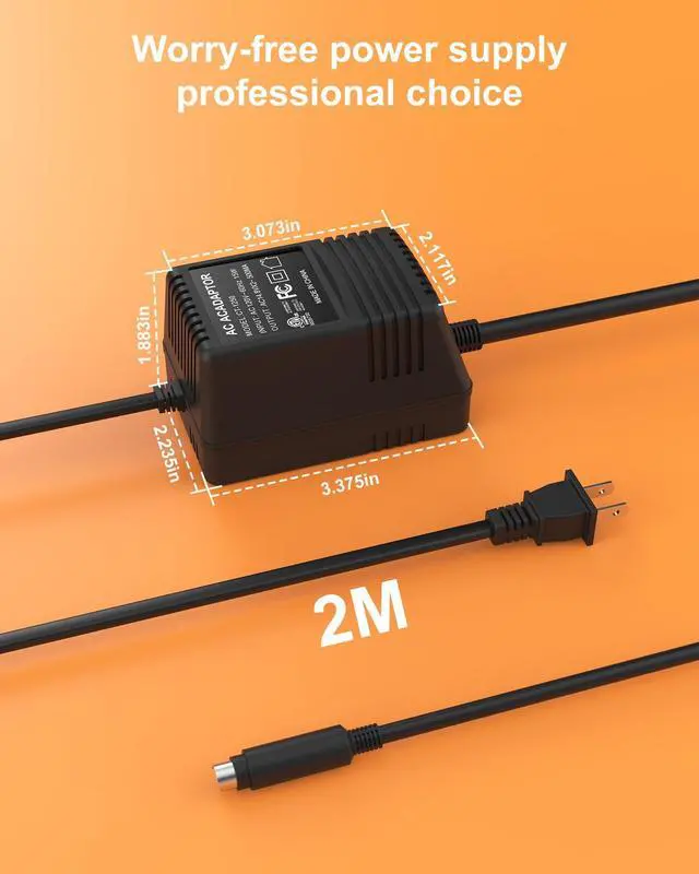Prong Connector: Mini 3-Pin Din Round connector for Beringher mixer, featuring a 6.56 ft/2M long cable and a US standard plug, this power cord offers convenient usage and reach for your charging needs