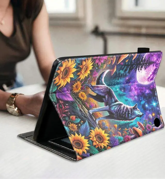 [Compatibility] - Specifically designed for All-new Kindle Fire HD 8 / Fire HD 8 Plus tablet [12th/10th Generation, 2024/2022/2020 Release]; CAN NOT FIT Kindle Fire HD 8 Tablet (8th/7th/6th generation, 2018/2017/2016 release). Please Check Your Device Model Before Purchase. ^^ [Premium Materials] - This Tablet case ultra slim and lightweight design with fashion pattern. PU leather soft-touch front exterior with soft TPU back, protect the tablet from dirt, scratch, shocks and bumps. Shockproof and impact resistant. Durable safety material ideal for kids and adults. ^^ [Hands-Free Stand Design] - Folding folio design for the fire HD 8 tablet case support multi-angle horizontal stand, Free your hands for other activities.