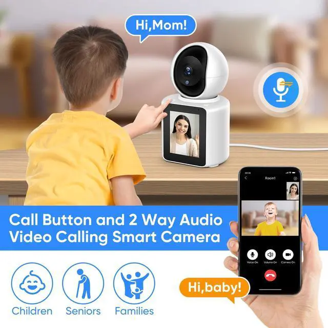 ^^ All in One Smart Video CameraThis innovative Video Calling Smart Camera is perfect for busy parents, family members on long-term business trips, and anyone who needs to take care of the elderly and children. With video calling, you can keep an eye on your family members and respond quickly to any changes or safety concerns.