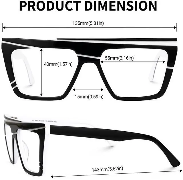 • Frame Material:These stylish square frame glasses are made of acetate, lightweight, are comfortable to wear