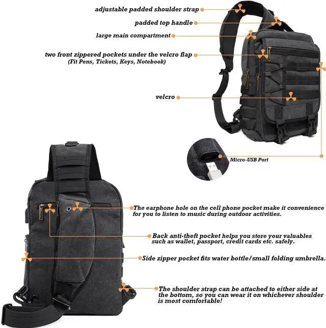 Material: The messenger sling bag is made of high quality and water-resistant canvas material, smooth zippers and sturdy inner lining.
