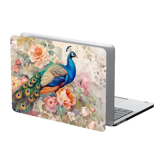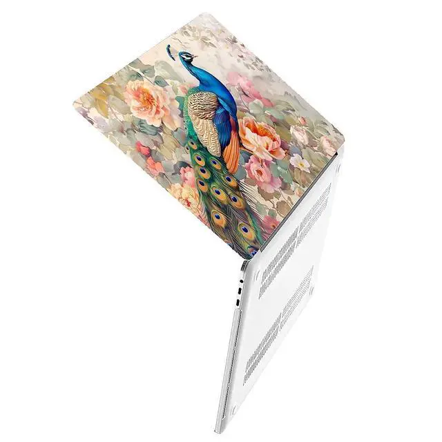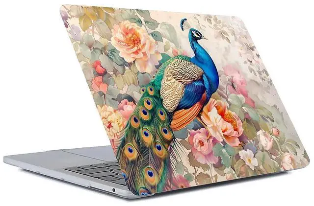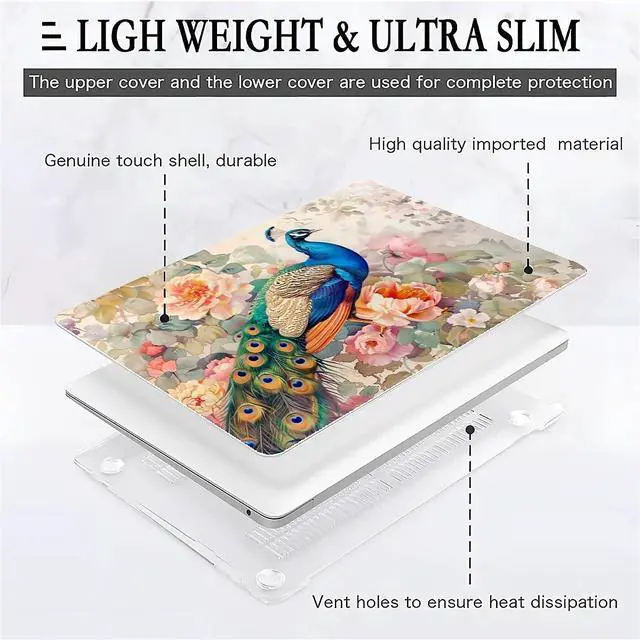 Yicomon Compatible with MacBook Air 15 Inch Case 2023 M2 Chip Model A2941, Plastic Hard Shell Case for Mac Air 15 with Touch ID (2023) - Flowers Peacock
