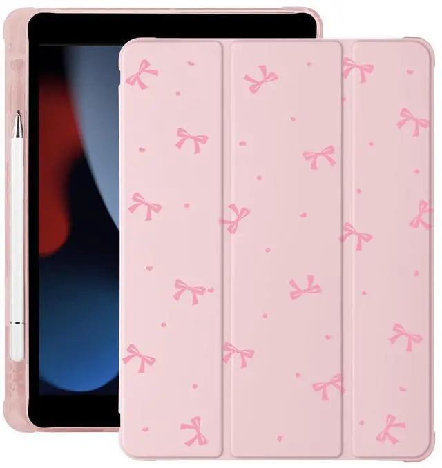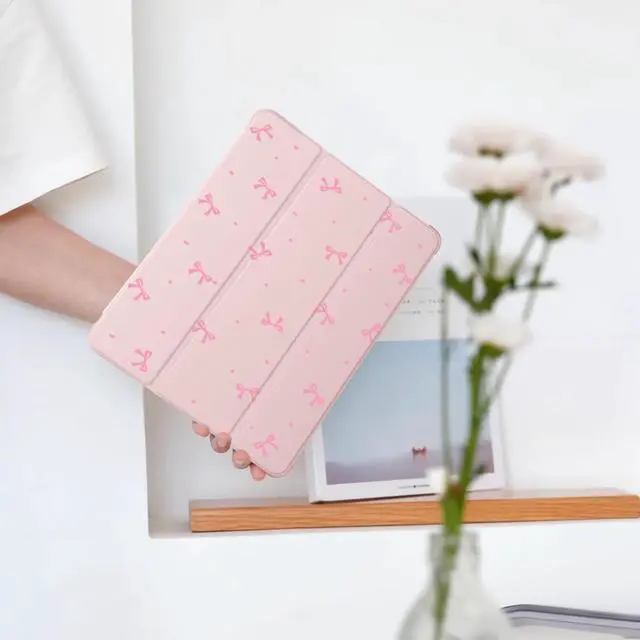 BlHMCASE Cute Pink Bow Kawaii for iPad Air 11 Inch Case 7th/6th Generation (M3/M2) 2025/2024 with Pencil Holder, Auto Sleep/Wake, Pink Leather Soft TPU Back Cover