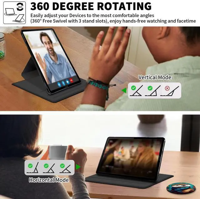 Adjustable Angle: 360 degree rotation stand tablet case can rotate both Horizontal and vertical modes flexibly, built-in 3 anti-slip strips support adjustable angle for video watching, chatting and easy typing ^^
