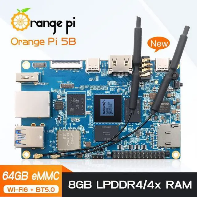 Difference From Pi 5]: Orange Pi 5B adds wireless communication function Wi-Fi 6 and Bluetooth 5.0 module to Orange Pi 5. Wi-Fi supports 2T2R 802.11 ax/ac/a/b/g/n, using both 2.4GH z and 5GHz bands with MIMO standard. Wi-Fi using 2 antennas, 1 of which is shared with Bluetooth, using the PCIe 2.1 interface; BT 5.0 uses UART/ PCM interface. Meanwhile, 32GB/64GB/128GB/256GB eMMC memory can be added to the Orange Pi 5. ^^ [Wide Range Of
