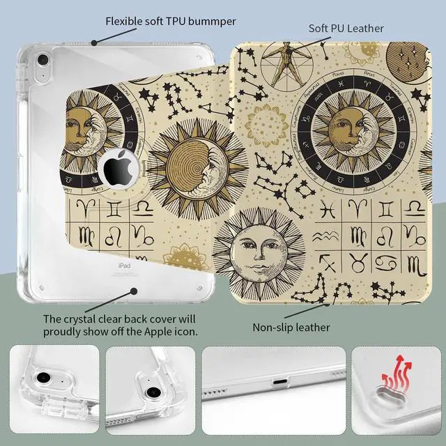 Full Protection Crafted with premium PU leather and soft TPU, this 2022 iPad 10th Gen 10.9 -inch case resists stains and scratches. HD printing ensures long-lasting color vibrancy without fading. ^^ Auto Sleep/Wake Built-in magnets activate smart sleep/wake functionality. Automatically saves battery life by turning the screen on/off when opening/closing the case. ^^ 360 Rotating Stand Adjust viewing angles effortlessly with the rotating stand. Securely holds your iPad in portrait or landscape mode for typing, streaming, or video calls. ^^ Multiple Styles Available Choose from sleek modern designs, vintage classics, or playful cartoon patterns to match your personal style.