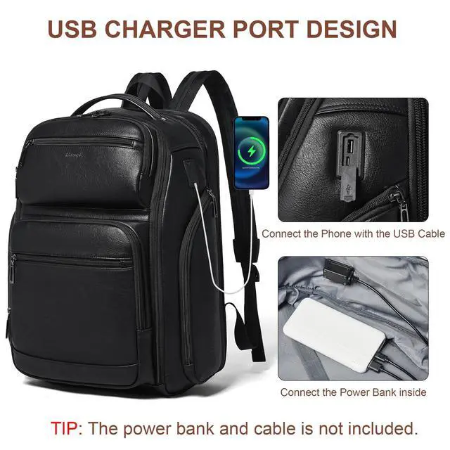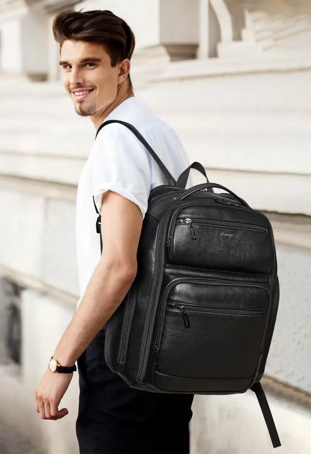 Maximum organization and expandable capacity: crafted with soft, premium, durable vegan leather, this 40l carry-on backpack features an expandable design to maximize your storage space. multiple interior pockets and an exterior bottle pocket keep all your travel and work essentials neatly organized.