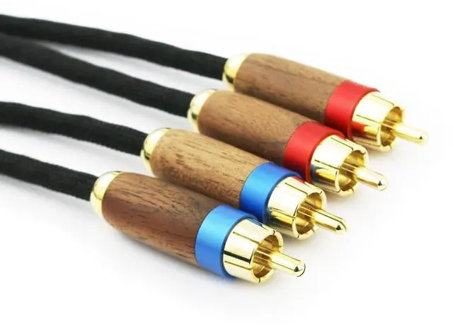 Connector: 2RCA Male to 2RCA Male, the connectors shell are made of the walnut wood / Solid Wood - Walnut + Brass Gold Plated