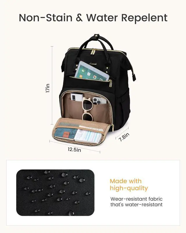 Dimensions: 12.5"L * 17"H * 7.8"D, Weight: 2.13 lb. Total of 2 compartments and 19 pockets for laptop accessories, nurse essentials, teacher supplies, travel accessories must haves. ^^ BEST TEACHER + NURSE + STUDENT + WORK BACKPACKIt holds allllll your things nice and organized. Its straps are comfortable. There's a padded laptop sleeve, zippered pockets for chargers and pens, and even a hidden back pocket for valuables. It's waterproof, lightweight, and holds up beautifully for daily use whether your're heading to a coffee shop, teaching, or traveling. Love the durability and how easy it is to take with me daily. ^^ TRAVEL READYAirport Approved & Pickpocket-Proof! Great bag for business or a short trip! Slide it onto your suitcase with the luggage pass-through strap for easy travel. This travel bakcpack carry on flight approved fits perfectly as a personal item travel bagslide it under airplane seats or into overhead bins. ^^ COMFORTABLE + DURABLETravel & Commute in Comfort. The shoulder belt and back are equipped with high-quality foam pads, which are breathable and pressure reducing., make heavy loads feel lightereven after hours teaching or dashing between meetings.