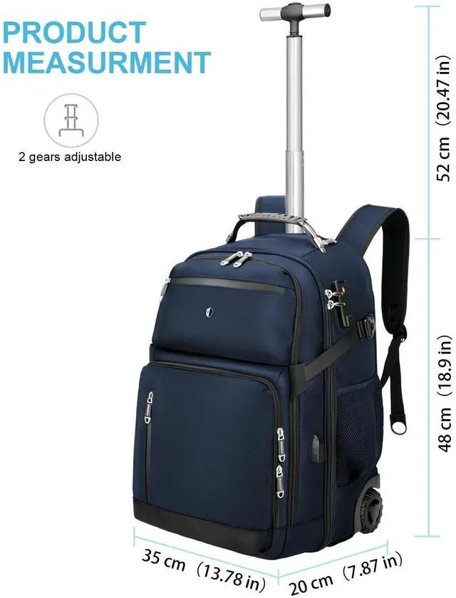 Description2-IN-1 CONVERTIBLE LAPTOP BACKPACK WITH WHEELSSWICKY RICOOI rolling backpack offers versatile rolling and backpack modes. Featuring breathable construction and a detachable shoulder strap, it easily switches between rolling suitcase and backpack use. Perfect for travel, business, hiking, outdoor activities, or weekend trips