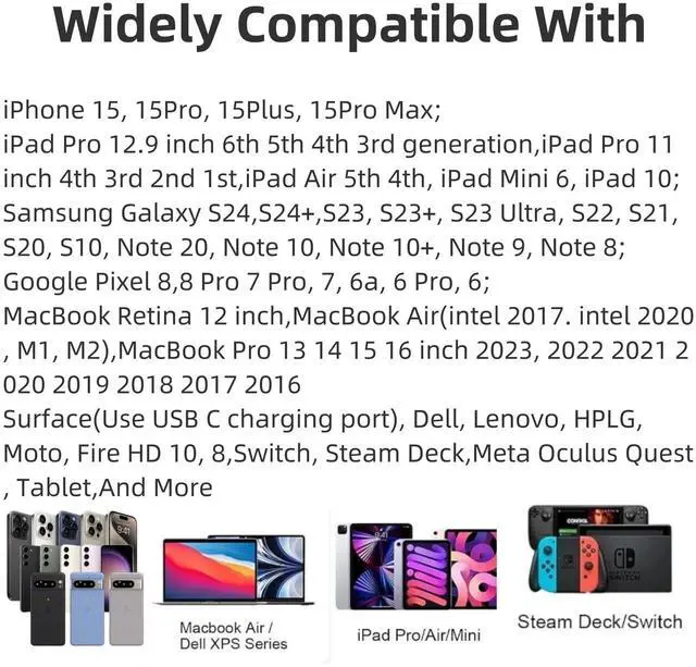 ^^ Wide Compatibility: Compatible with iPhone 16, iPhone 16 Pro, iPhone 16 Pro Max, iPhone 15, iPhone 15 Pro, iPhone 15 Pro Max, Galaxy S24, Galaxy S23, S23 Ultra, S22, S21, Galaxy Z Fold, Galaxy Z Flip, Pixel 8, Pixel 8 Pro, Pixel 7, Pixel 7 Pro, Pixel 6, MacBook Air, MacBook Pro, Dell XPS, HP Spectre, ThinkPad ^^