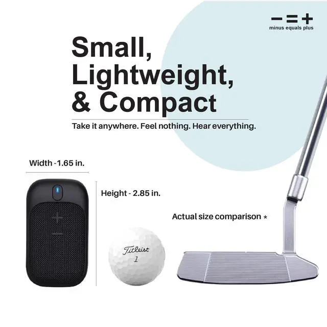 Elevate Your Game with the Minus Equals Plus - = + Portable, Wireless, and Built for the Course Golf Speaker Take your golf rounds to the next level with the Minus Equals Plus Golf Speaker a compact, wireless clip-on speaker engineered for players who enjoy their playlists as much as their swing. Designed to seamlessly clip onto your golf bag, pushcart, or belt loop, this ultra-portable speaker brings crisp sound and rugged durability to every hole.