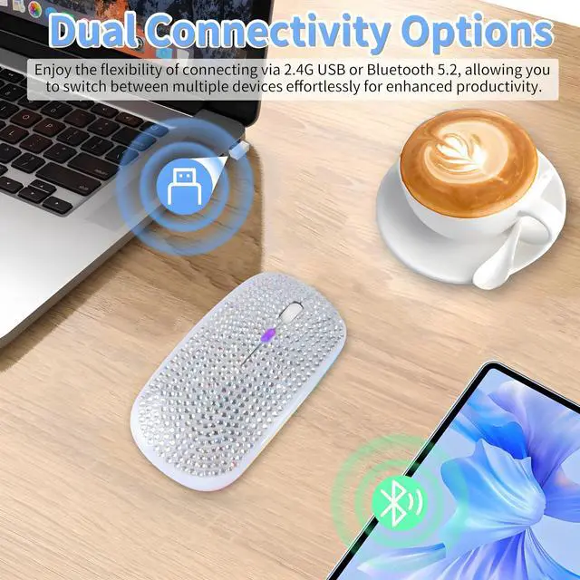 ^^ **Dual Connectivity Options: ** Enjoy the flexibility of connecting via 2.4G USB or Bluetooth 5.2, allowing you to switch between multiple devices effortlessly for enhanced productivity.