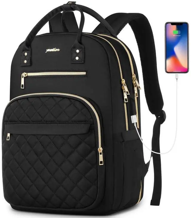 The back anti-theft pocket protects your personal items well. ^^ WATERPROOF AND FASHION TRENDSFabric of the womens bookbag is superior to the ordinary Oxford fabric on the market. Soft to touch, waterproof and shiny. Checker Embroidery Design, in line with the current market trend. Best gift of backpack for women. ^^ USB NEW DESIGNWith the built-in charging cable inside, this usb backpack offers you a more convenient way to charge your phone while walking. Compared to other ordinary USB exposed, we wrapped the USB connector hole with fabric, the school backpack looks more elegant and beautiful.