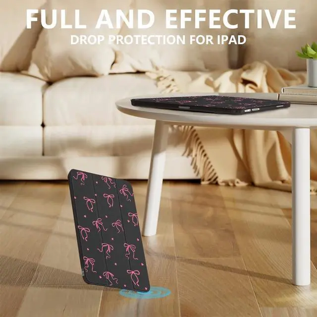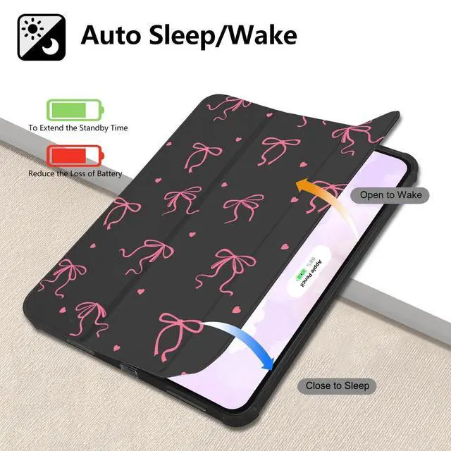 Automatic sleep/wake up&built-in pen holder: This Cute Aesthetic Bow case for ipad can be opened without touching a button. When the case is opened, it will automatically wake up. When you close it, the pad will automatically enter sleep mode. Helps to extend battery life. This Trendy Fashion bows case for ipad has a hidden slot designed specifically for storing pencils, making it easy to carry pencils with you.