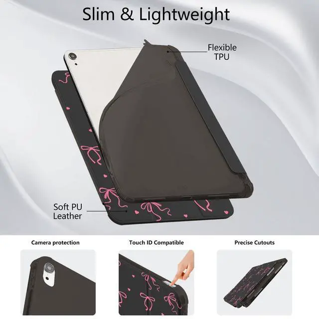 High Quality&Perfect Fit: This Cute Aesthetic Bow case for ipad is made of soft silicone on the front and durable TPU on the back. It has a comfortable lining that can protect your pad from scratches and bumps. Meanwhile, this Trendy Fashion bows cover for ipad is perfectly tailored to easily access all controls and functions (camera, speakers, ports, and buttons) ^^
