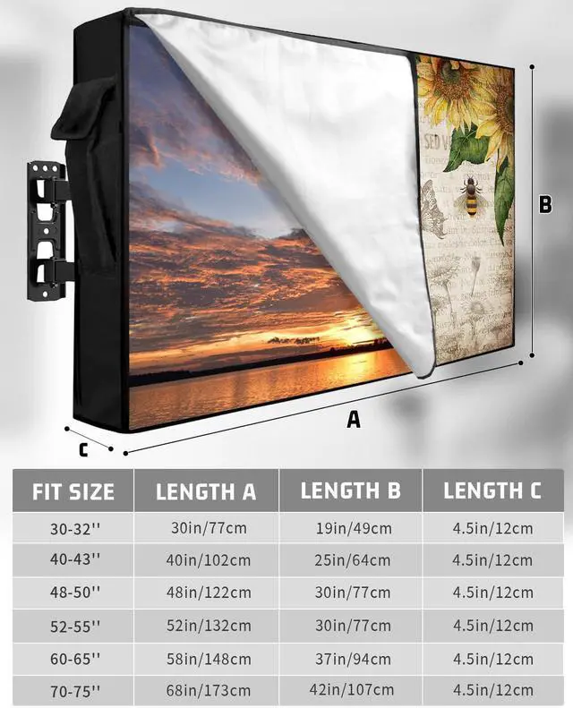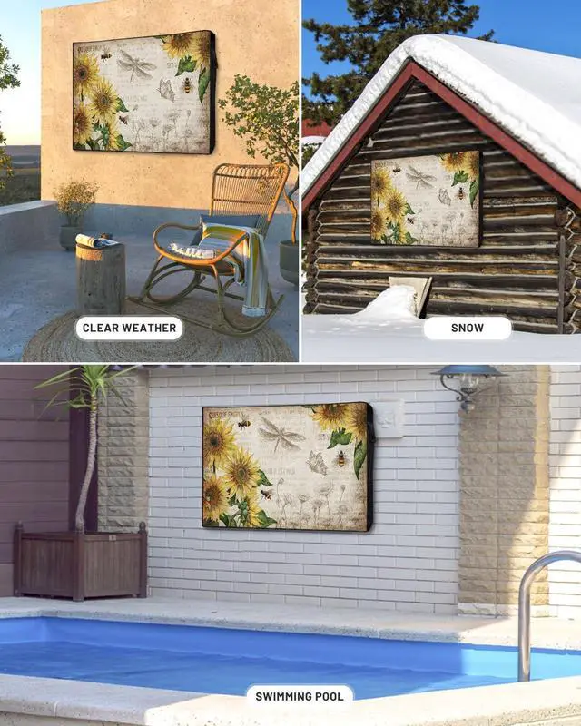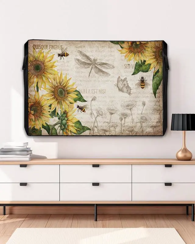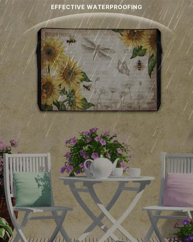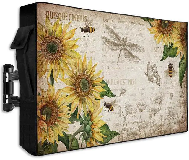 Outdoor TV Decorative Cover: Our beautiful TV cover for outside adopts Sunflowers and Honey Bee Vintage Background pattern, which is carefully designed with bright colors, high color fastness and not easy to fade. The unique pattern design can perfectly decorate your home and make it more eye-catching. ^^ Waterproof and