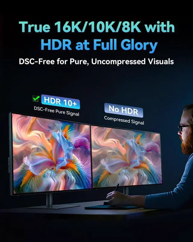Visuals: Enjoy breathtaking color accuracy and dynamic HDR effects with our display cable, ensuring every scene is rendered with stunning depth and realism for an immersive viewing experience. True 8K/10K with HDR at Full Glory ^^ Ready for