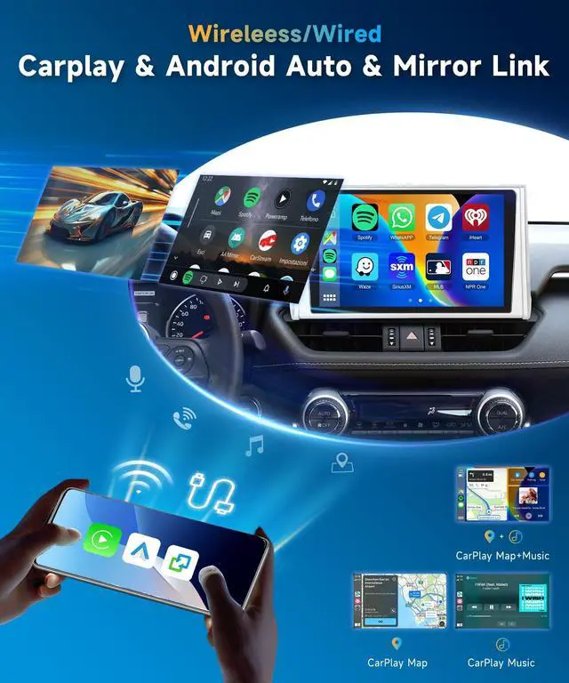 Android Auto: The Toyota RAV4 stereo with wireless CarPlay/Android Auto, there's no need to plug in phone each time you enter the car. Use maps navigation, make calls, text, or tune in to music/podcasts seamlessly. Also support wired Carplay/Android Auto ^^ More
