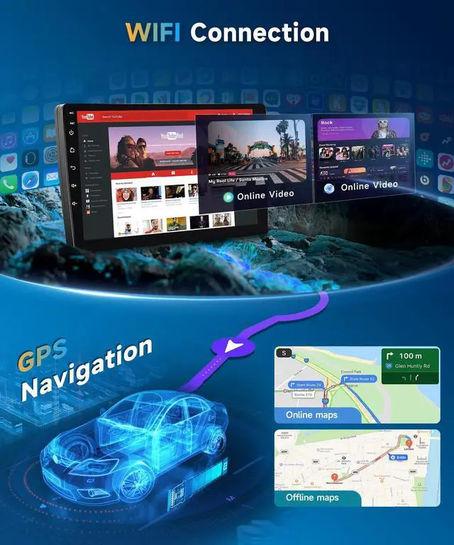 ^^ Android Car Stereo: The Toyota RAV4 radio features the latest Android 13 OS system, a quad-core processor, 2GB of RAM, and 64GB of ROM, guaranteeing seamless operation and quicker response times. Additionally, you can access a wide range of free apps and browse the internet by connecting to Wi-Fi ^^ Wireless CarPlay and