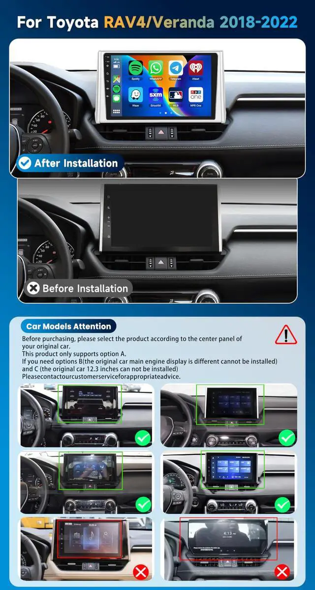 Applicable Car Models: This Android car radio fit for Toyota RAV4/Veranda 2018-2022 radio, comes with a wiring harness for plug and play installation.