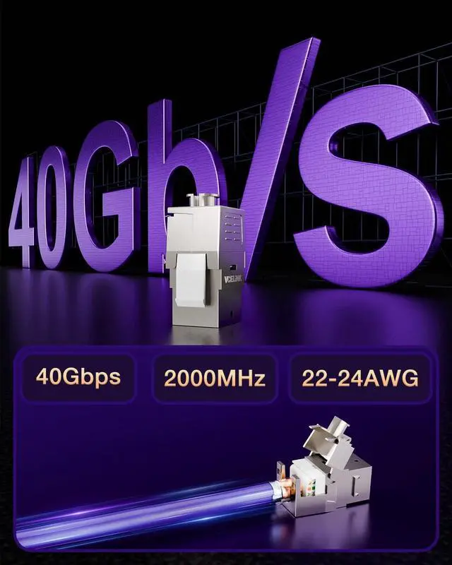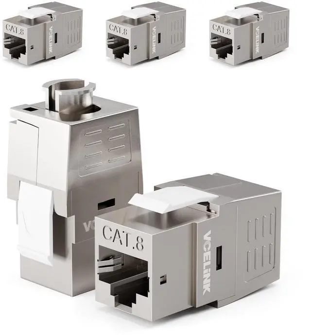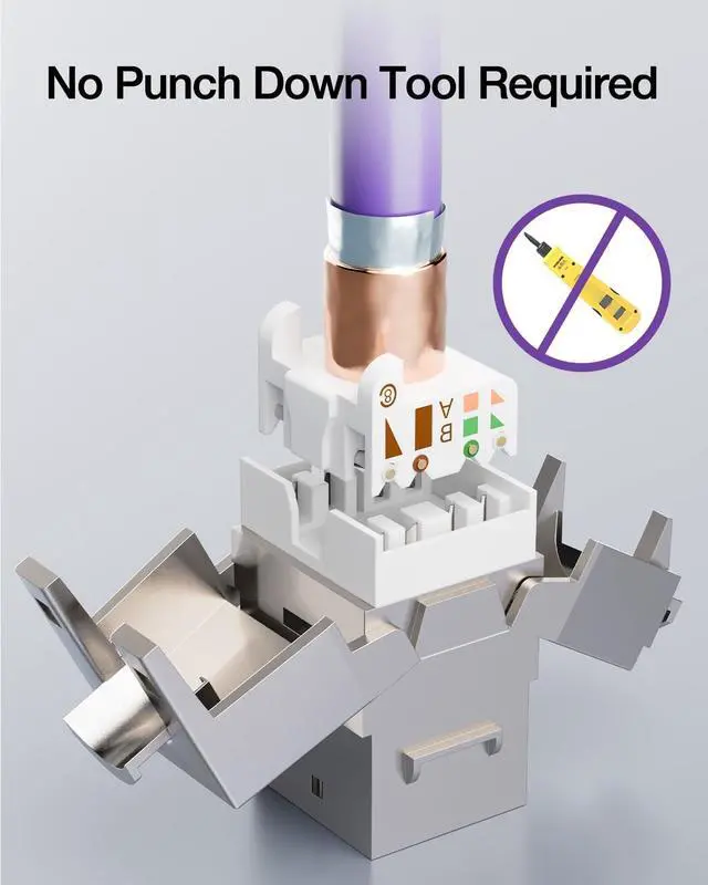 TOOL-FREE INSTALLATION: Toolless keystone jack supports no punch-down tool termination. A larger than 180-degree wide-angle, hinged design provides easy access and termination. The other port plugs in a CAT8 ethernet cable to connect.