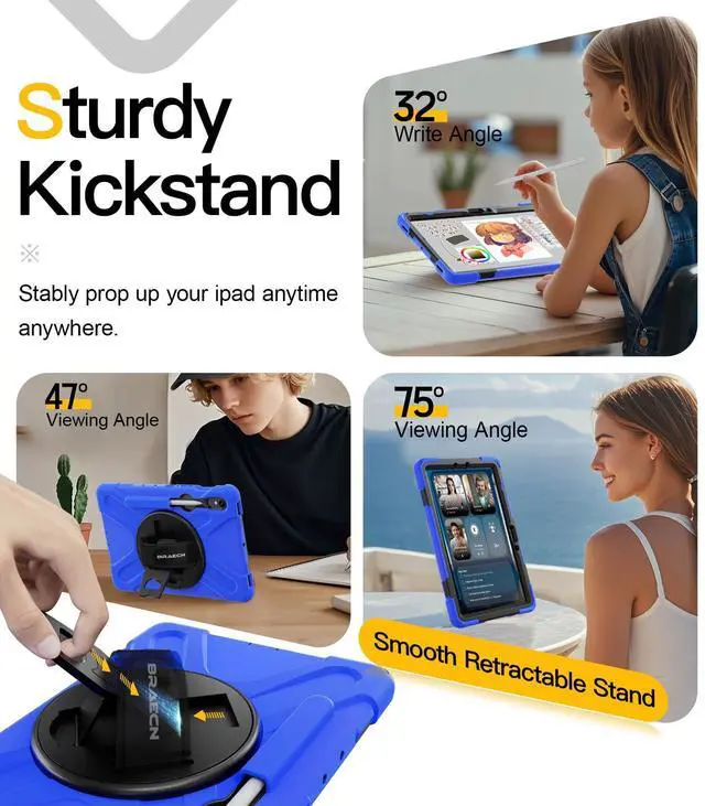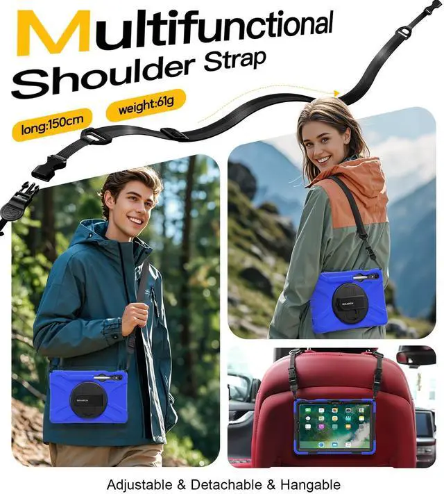 Adjustable & Detachable Carrying Strap: The Samsung Tab S10 lite/S10 FE/S9 FE 10.9" &S9/S8/S7 11 inch 5G tablet case features a portable shoulder strap with adjustable length to fit adults or children. It securely supports the tablet in both landscape and portrait modes during outdoor work or travel, freeing your hands. It can also be hung in any location, such as the kitchen or bedroom. The rear seat hanging design allows children to easily view entertainment content.