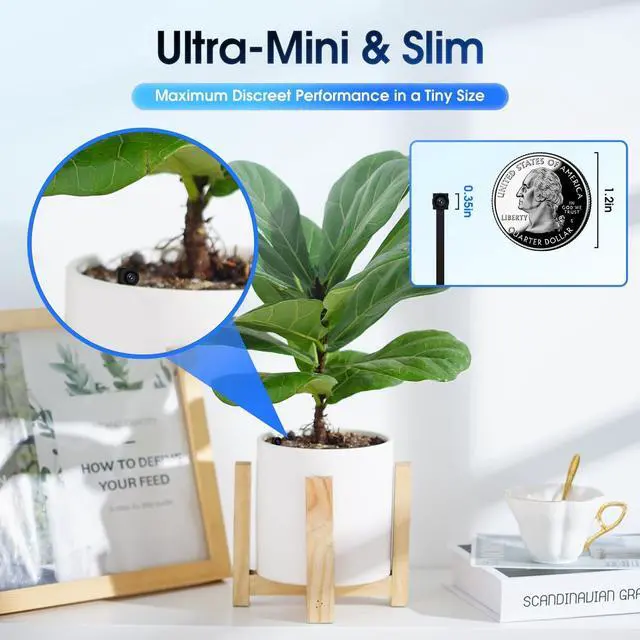 [Ultra-Mini Hidden Lens Easy to Install, Hard to Detect] As small as a soybean, the camera lens can be discreetly hidden in bookshelves, decorations, or wall corners. No professional setup required. Comes with versatile mounting accessoriesideal for home, office, or pet monitoring. ^^ [2K Ultra HD Clarity + 140 Wide-Angle View] Capture every detail with 2304x1296 resolutionsharper than standard 1080P. The 140 wide-angle lens ensures broader coverage with fewer blind spots. Its your second pair of eyes when youre away, keeping watch over your loved ones or workspace.