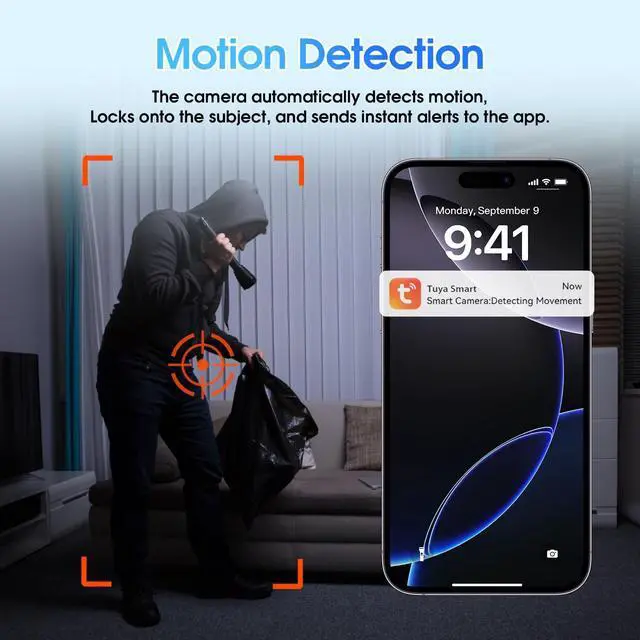 ^^ [Real-Time Remote Monitoring via App Stay in Control Anywhere] Connect to the Tuya Smart App via 2.4G /5G WiFi, compatible with both iOS and Android. Instantly view live video from anywhere at any time. Built-in motion detection sends real-time alert notifications straight to your phone. Supports SD card and cloud storage with playback features. No ads, clean interface, and strong privacy protection from a trusted smart home platform. ^^ [Quick 3-Step Setup Up and Running in 3