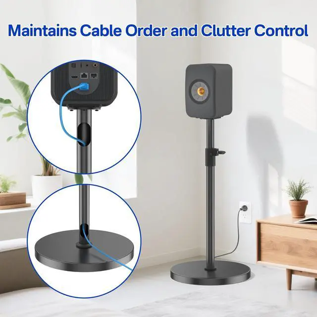 ^^ Sturdy & Durable Built from premium steel, this surround speaker stands for KEF LSX II LT stand delivers exceptional strength and stability. The thickened round base supports up to 30 lbs, effectively minimizing vibrations and resonance. Provide your speakers with long-lasting, sturdy support ^^ Neat Cable Design Designed with integrated cable management, our bookshelf speaker stands for KEF LSX II LT speaker stand allows power cords to be routed inside the support tube, keeping them neatly hidden. A bottom cover plate conceals the connection port, reducing dust buildup while giving the stand a cleaner and more elegant look that complements any space.
