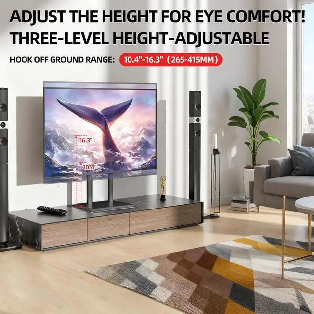 Safety "Bracket Lock" design to protect your TV from falling down or slipping aside. ^^ EASY INSTALLATIONWith no-drill installation, this universal TV stand base allows for quick and tool-free setup, ideal for convenient placement as a TV stand for living room or other spaces. ^^ 10-YEAR SUPPORT & PEACE OF MIND We stand behind the durability of our metal tv stand with a 10-Year after-sale service. Choose this universal tv stand base with complete confidence for long-lasting performance and dedicated customer support.