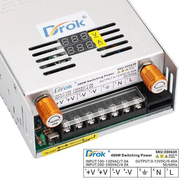 Voltage range: DC 0-12V. This supply is suitable for 2V 3V 5V 6V 9V 12V devices. The voltage precision is 0.1V. NoteThe maximum current is 40A. But the ouput current can be adjusted by the potentiometer. No matter how many voltage is adjusted, the max current should not be higher than 40A. It can be used to device of 5A 10A 12A 24A 36V 40A. Make sure to use the devices which is below 40A. ^^ Hareware This Buck Converter is equipped with LED screen, heat sink and cooling fan. The LED screen can clearly display the output voltage and output current. Heat sink and cooling fan can control the temperature in a safe range. During the running power is high, the cooling fan will automatically activate with little noise. ^^ Easy Operation This supply is no need to install, after connecting wire, it can be used to adjust output, which is convenient. The potentiometer is inset into the supply. Only to rotate the potentiometer can adjust output parameter. ^^ Protection Over Load Protection, Over Voltage Protection, Short Circuit Protection, which can protect your device from damage.