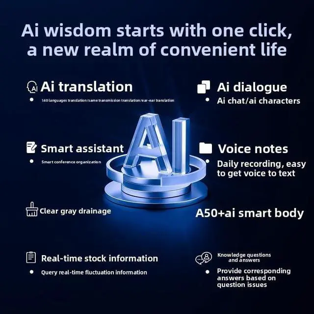 **Key Features: **1. **AI-Powered Smart Display** The built-in **smart screen** allows you to manage calls, music, and settings with ease, putting **cutting-edge technology** at your fingertips. 2. **Real-Time Face-to-Face Translation** Perfect for **global communication**, these earbuds use **AI intelligence** to translate conversations instantly, making travel and business meetings smoother than ever. 3. **Advanced ANC Noise Cancellation** Enjoy immersive sound with **industry-leading noise reduction**, blocking out distractions for a premium listening experience. 4. **Long-Lasting Battery Life** Engineered for all-day use, these earbuds provide extended playtime, keeping up with your **fast-paced, on-the-go lifestyle**. 5. **Sleek & Trendy Design** Designed for the **fashion-forward**, these earbuds combine **modern aesthetics** with ergonomic comfort for a perfect fit. Whether you're a frequent traveler, a business professional, or a music lover, these **AI-enhanced earbuds** redefine convenience and performance. Upgrade your audio experience with the ultimate **wireless earbuds for smart, global connectivity**order yours today!