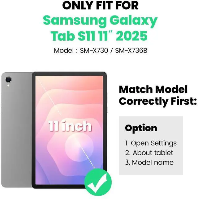Compatibility: Only fit for Samsung Galaxy Tab S11 11 Inch 2025 Release, Model: SM-X730, SM-X736B; please confirm the model (SM-X***) before purchase.