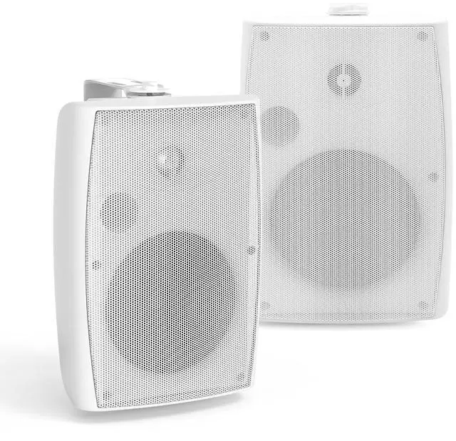 • EASY INSTALLATION The wall-mountable outdoor speakers come with adjustable brackets, allowing you to easily install and angle the speakers for optimal sound dispersion. Perfect for DIY enthusiasts, the setup is quick and hassle-free